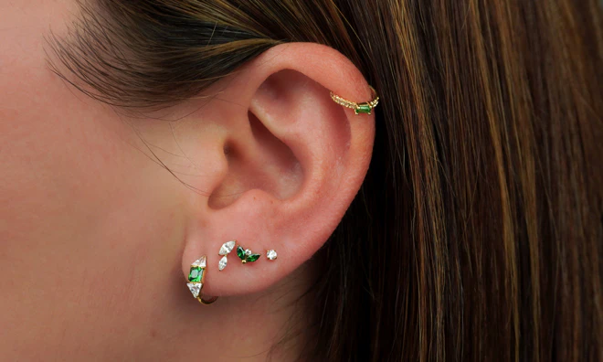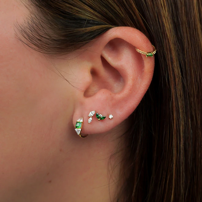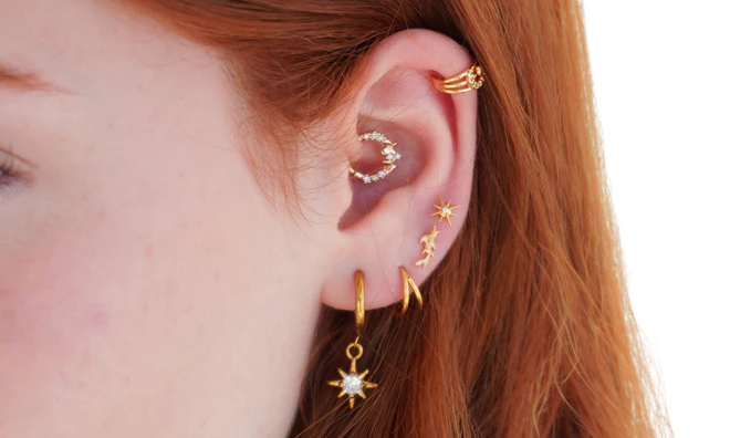 Huggie, smeigės ir netikri auskarai, kurie leidžia derinti be vargo.