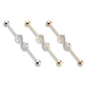 Begalybės ženklas, kuris panašus į 8, visada buvo madoje. Mūsų parduotuvėje rasi kelis papuošalus su šiuo ženklų, o dabar ir industrinį auskarą. Auskarui nešioti reikia turėti du pirsingus ausies šone. Įdėjus auskarą kamuoliukai bus už ausies, o begalybės ženklas ausies viduje, kurį, beje, galima užfiksuoti o-žiedais, kad jis nejudėtų. Be to, begalybės ženklas yra papuoštas mažais skaidriais kristalais.