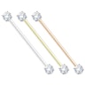We introduce a never-seen-before straight barbell for an industrial piercing. This double-jeweled barbell is made of stainless steel, featuring beautiful zirconia stones at both ends.