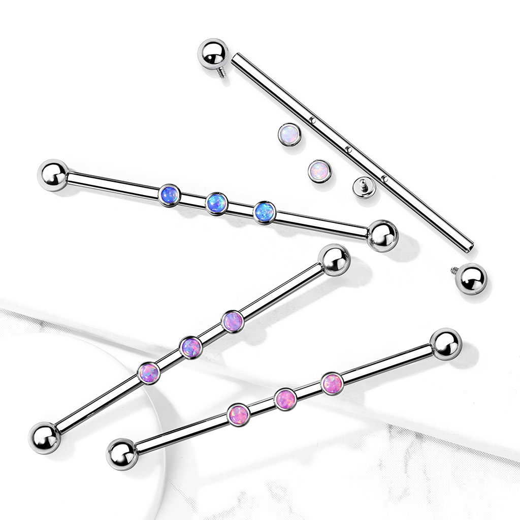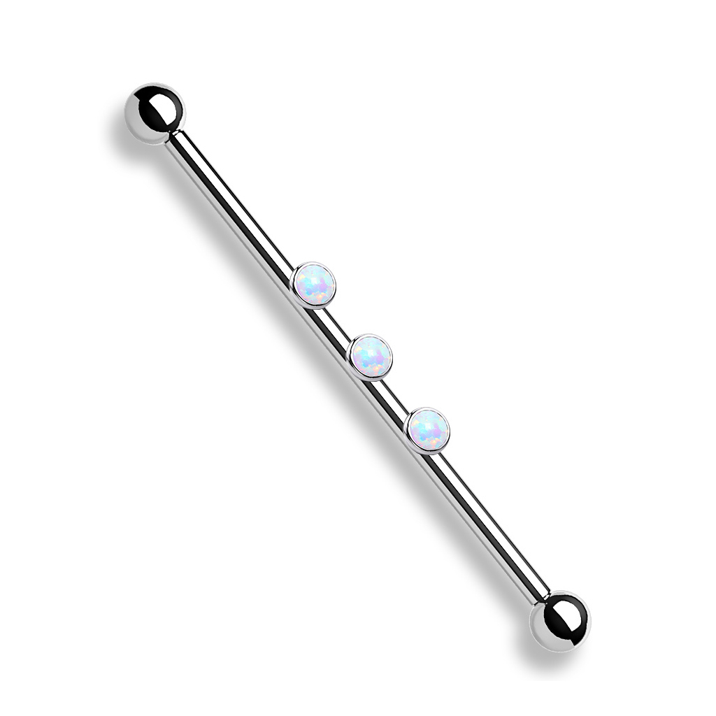 Pavadinimas: Industrinis auskaras su trimis vidinio sriegio opalais