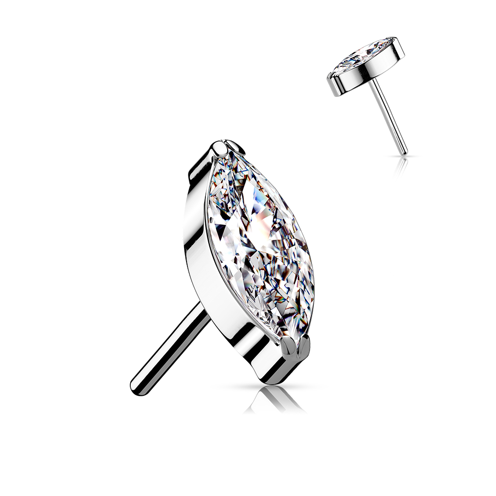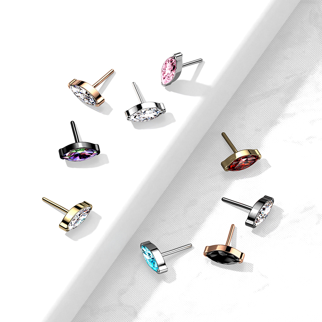 Threadless jewelry is the way to make your jewelry changes smooth. Here you can get a stunning marquise stone top for your push-in jewelry. And if you want style options, this particular design gives you all the options you could wish for! You could choose a simple, clear stone with gold, rose gold, or silvery material for your everyday style, and go for a more daring design, like rose gold with black stone, for going out.