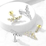 The labret is made of 14-karat gold and is available in two versions: yellow gold and white gold. You can choose between a 1/4" (6 mm) or a 5/16" (8 mm) bar, depending on your needs. The 5 zirconia stones in graduated sizes are a real eye-catcher, and thanks to the arched arrangement of the stones, the shape of the labret will fit perfectly into your helix or your earlobe.