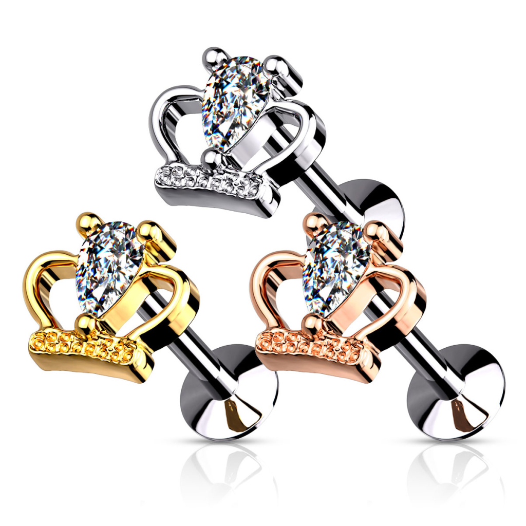 Pavadinimas: Įstumiamas labret auskaras su karūna ir kristalu