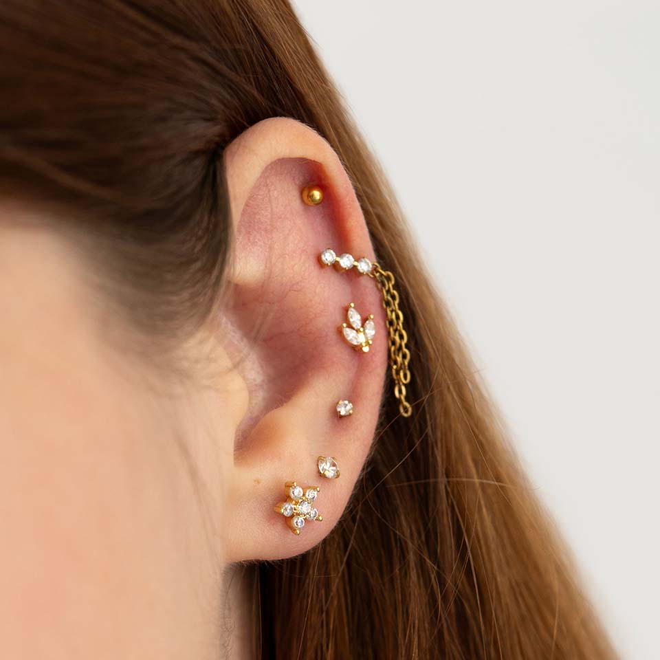 Vieta: Tragus, Spiderbite, Snakebite, Medusa, Madonna, Žemesnysis labret, Kaušelis, Helix, Vidinis kaušelis, Priekinis helix, Angelbite