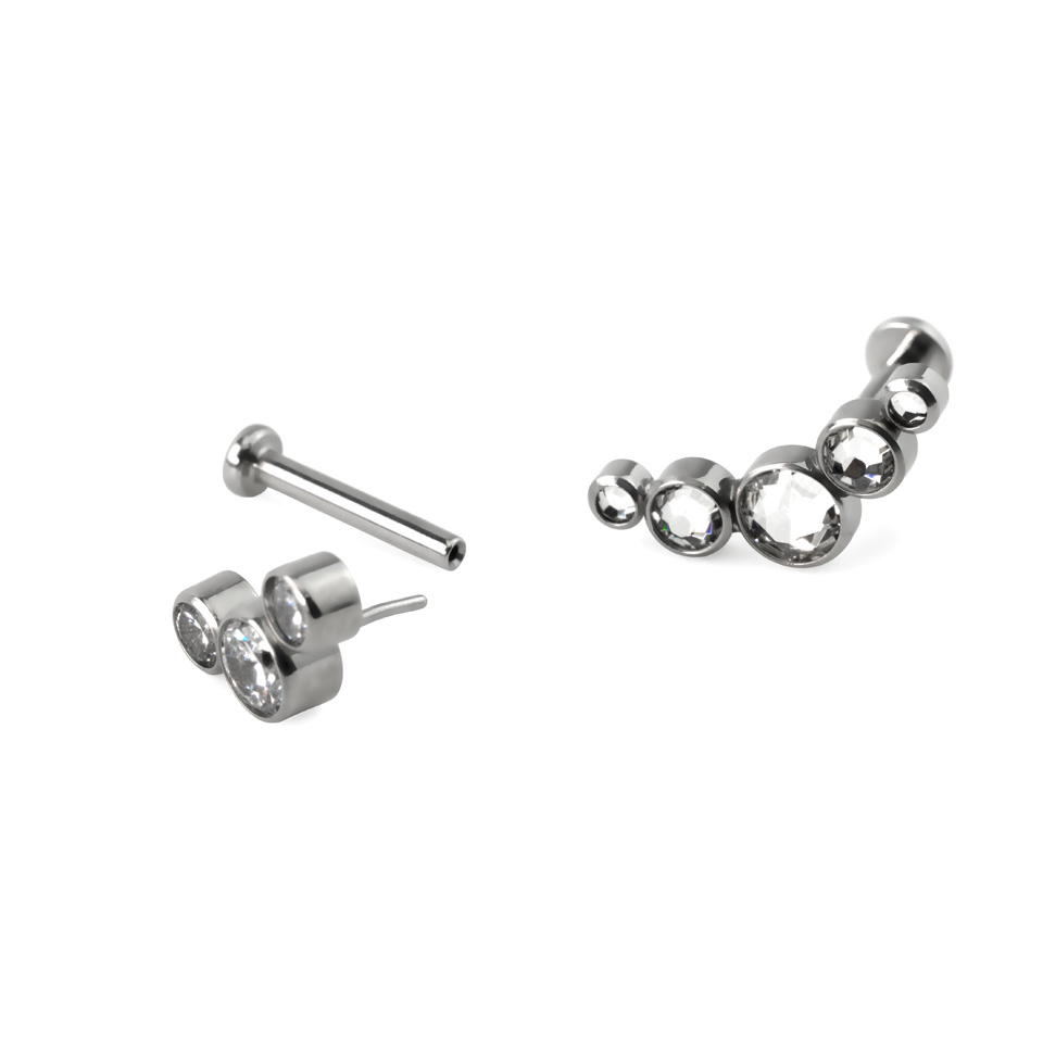 Pavadinimas: Įstumiamas titano labret auskaras su įvairiais akmenėliais