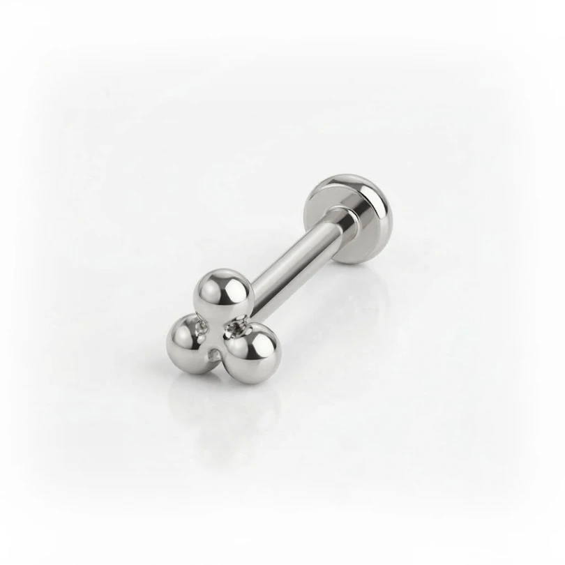 Pavadinimas: Įstumiamas titano labret auskaras su trikampiu rutuliukų dizainu