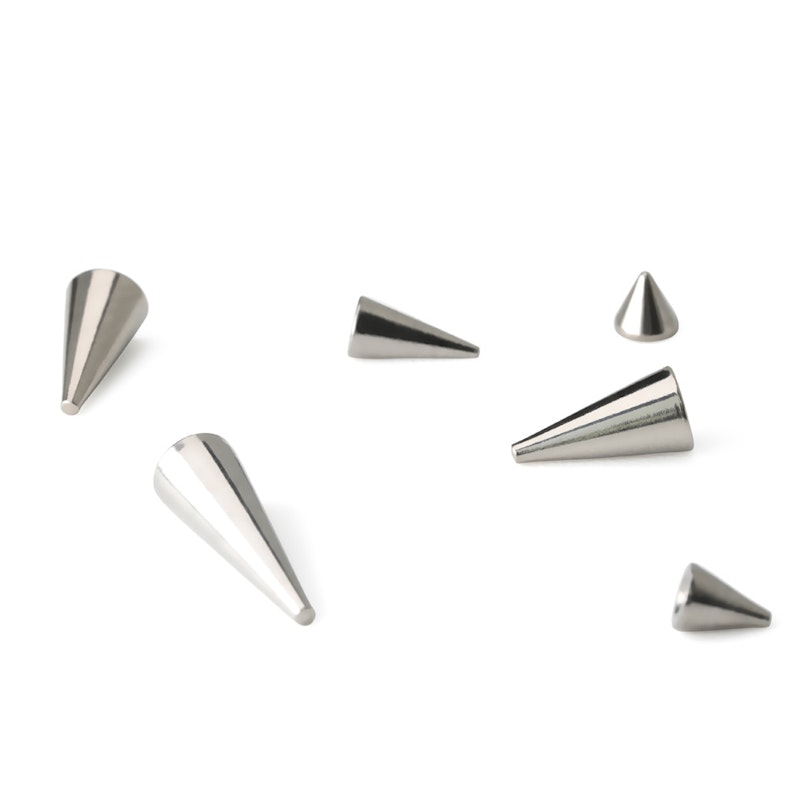 The smallest spike has a height of 1/8" (3 mm), and the biggest spike 1/2" (12 mm), so you can use them for every kind of barbell or labret.