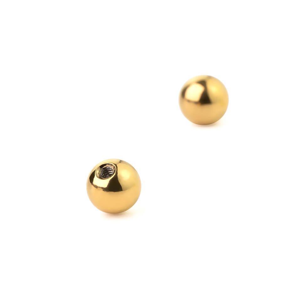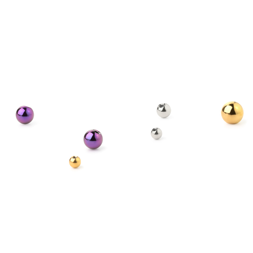 These beautiful balls are made of pure surgical steel, and they have a thin layer of colored titanium, achieved thanks to a process called ionization.