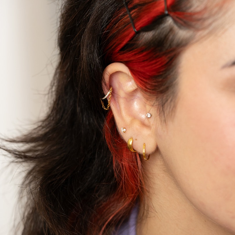 Available in a choice of gold or silver finishes, and 8 mm or 10 mm diameters, this piece will add a stylish touch to your ear arrangement wherever you choose to wear it.