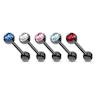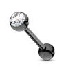 Juodas auskaras į liežuvį su įvairių spalvų kristalu