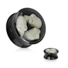If you are kicking and screaming for a bold and raw plug for your stretching, you have come to the right place. Further up this page, you’ll see an acrylic plug where three skulls have gotten inside. These skulls have been placed inside the circle with their face up at the front. A transparent layer covers the skulls to ensure they don't fall out and that the plug comes with an excellent finish.