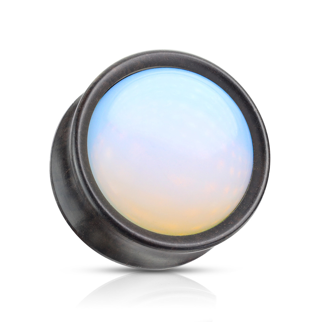 Priekyje opalitas yra išgaubtas, o atvirkščiojoje pusėje plokščias. Nerekomenduojame nešioti šį kamštį ten, kur oras yra labai drėgnas, nepamiršk, kad auskaras yra dalinai medinis ir jį gaminant buvo panaudoti klijai.