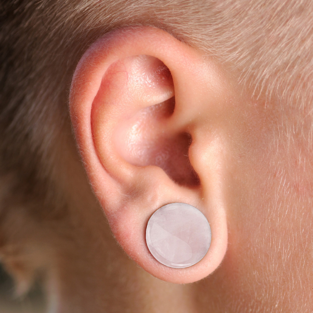 This plug is made of rose quartz, a precious gemstone known for exuding harmony and balance.