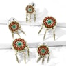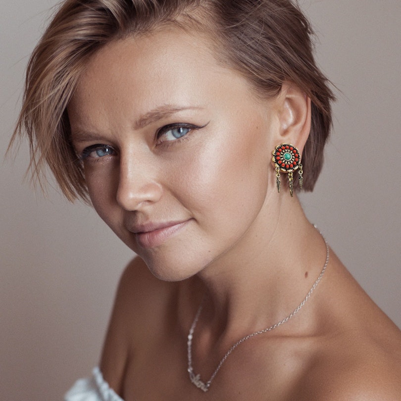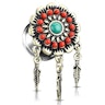 Šis tunelis imituoja gėlę: jos centre rasi nuostabų turkio spalvos akrilinį karoliuką. Žydras karoliukas gerai dera prie raudonų karoliukų... Auskaro kraštą puošia maži lapai. Taigi, šis kamštis į ausis tikrai turi daug įspūdingų detalių, viena iš jų - 3 plunksnos auskaro apačioje. Jos kaba laisvai, todėl plunksnos judės kartu su tavo kūnu.