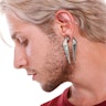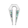 A hanger is a type of jewelry that hangs from an ear gauge or stretching. One of the characteristics of a hanger is that it's not available in as many sizes as other pieces like tunnels and plugs because the decorative part doesn't go through the stretching. Due to that, you can use this hanger if your earlobe has a minimum gauge of 00g (10 mm). The bigger your stretching, the more it will hang. If your ear gauge is larger, for example, 13/16" (20 mm), the jewelry won't fall out. This kind of hanger is called keyhole because it reminds of the hole where we insert the keys to open a door. Both sides of the hanger are embellished with an abalone decoration, so you can use it in both ears, left or right. Since abalone or mother of pearl is an organic material, one should expect variations between different models.
