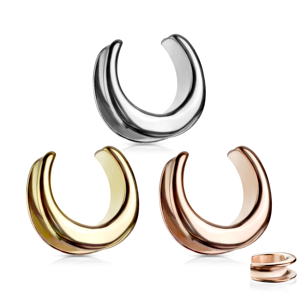 Tik nuo tunelio jis skiriasi tuo, kad turi galus, tai yra, nėra apvalus kaip paprastas tunelis. Tokį auskarą gali nešioti net jeigu tavo ausies diametras yra žymiai didesnis. Tunelio kraštai yra sulenkti, todėl auskaras tvirtai laikisis tunelio vietoje.