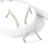 Unique and chic, this item has both, with the stones paving the way the nose to make a statement. The total length of the unique design bone crawler is 13 mm. The nose jewelry is available in 3 different colors: gold, rose gold, and silver. The piece has a standard size for a nostril piercing: a thread thickness of 0.8 mm and a length of 6 mm. A very exciting piece that is a must-have in a nose jewelry collection.