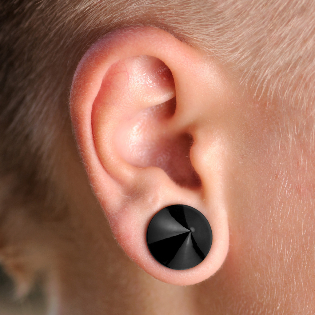 Do you want a new plug that is unconventional without going too far? This fabulous plug in black acrylic has the shape of a cone on both sides. Besides, it has an internal thread, which makes it very easy to put in and take out from your ear gauge. The part of the plug that goes in your stretched piercing is a bit smaller than the outside, making it look bigger than it actually is.