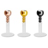 The jewelry is available in different lengths and colors. You choose the combination you want for your labret. Whichever you choose, the top of the post will always feature a 1/8" (2.5 mm) bezel-set crystal clear gem.