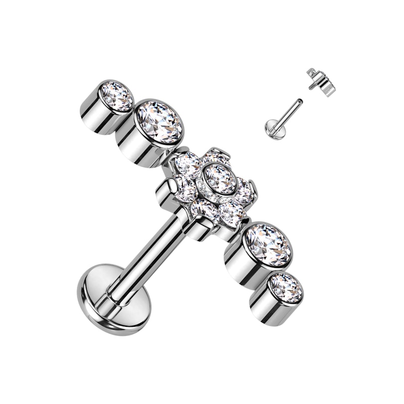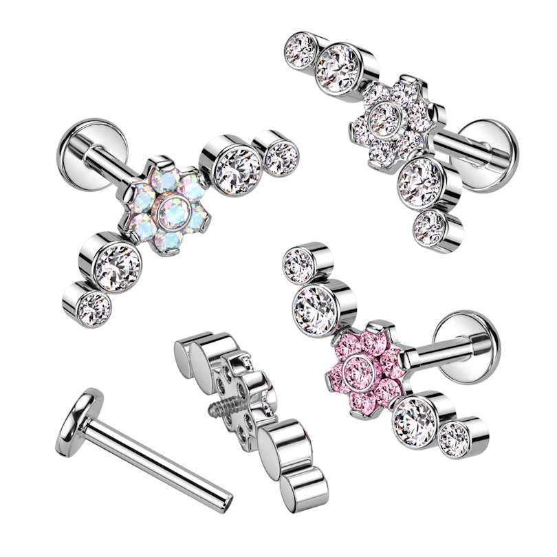 Pavadinimas: Labret auskaras iš titano su gražiu gėlių raštu
