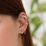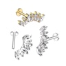This beautiful titanium labret has alternating marquise cut and round clear stones. The curved shape of this piece is especially suitable for lobe and helix piercings, where it follows the shape of the ear.