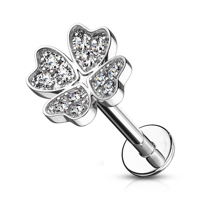 Pavadinimas: Labret auskaras su dobilu ir vidiniu sriegiu