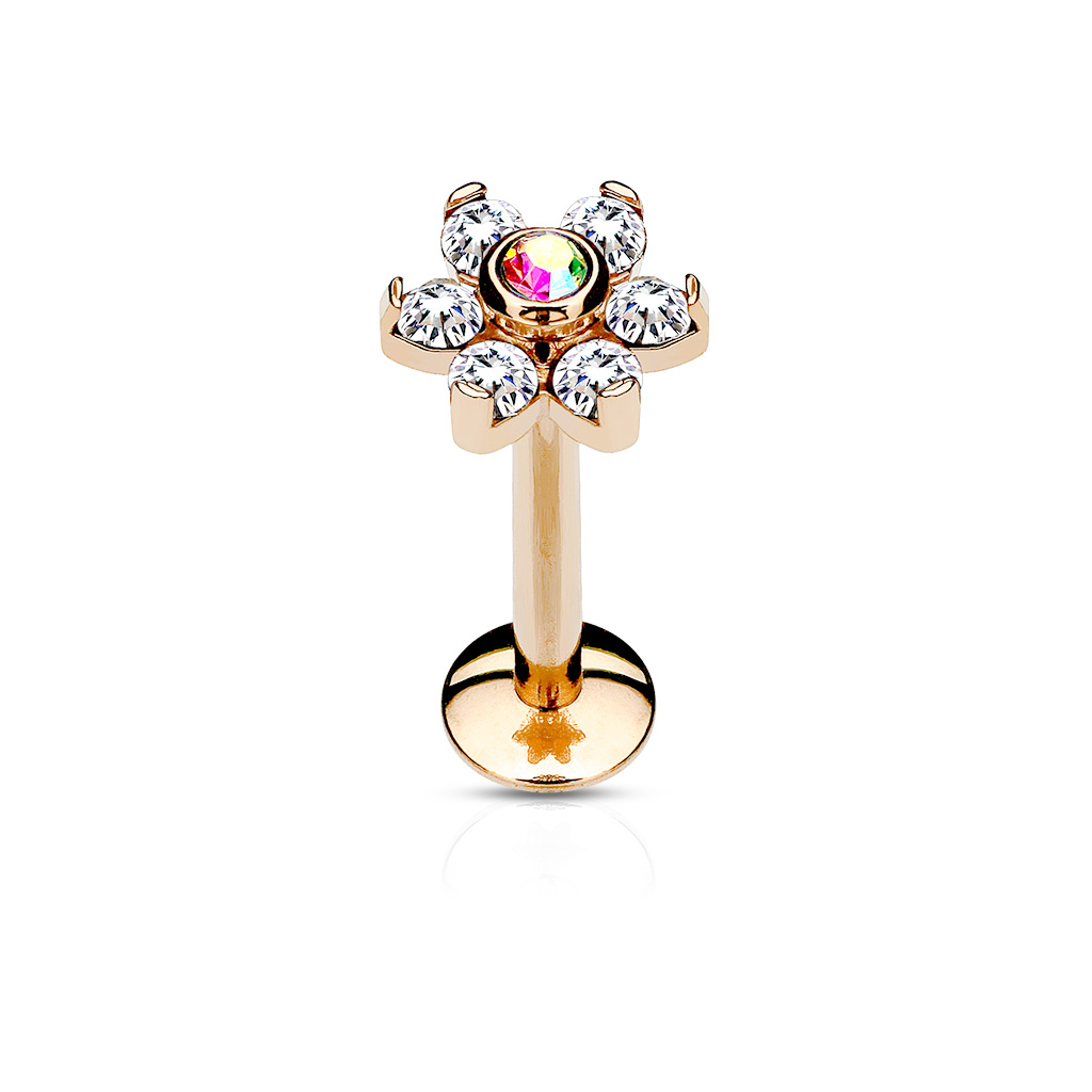 Labret auskaras su gėlyte ir vidiniu sriegiu-Rožinio aukso-Poliarinės pašvaistės