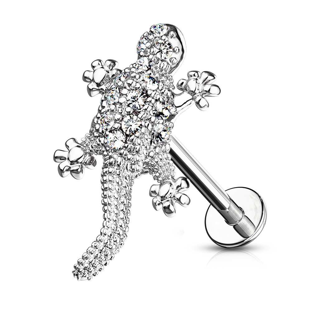 Pavadinimas: Labret auskaras su kristalais dekoruotu driežu