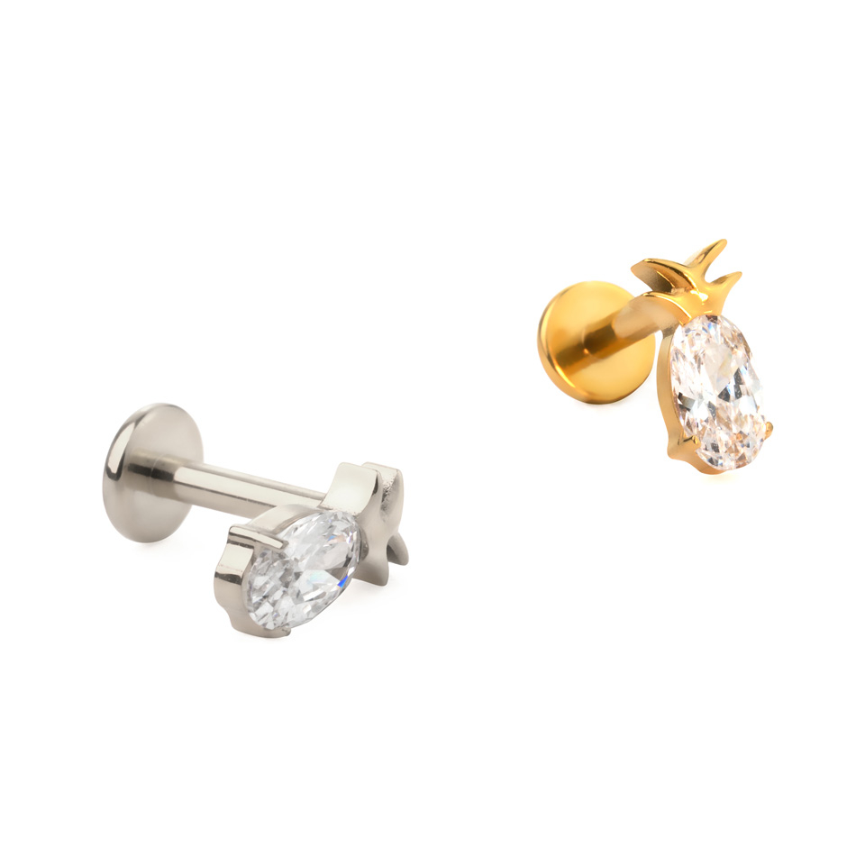 This delightful titanium labret is totally tropical with its charming pineapple design. Paved with cubic zirconia stones for extra twinkle this cute piece is sure to catch your eye.