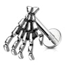 A labret is characterized by a bar with a flat disc at the bottom. This is the case with this piece of jewelry. However, this labret is not equipped with a regular ball; the ball is replaced by a skeleton hand.