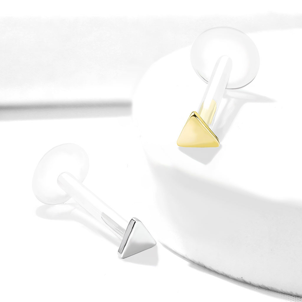 Pavadinimas: Labret auskaras su trikampio formos karoliuku iš 14k aukso