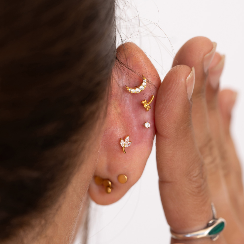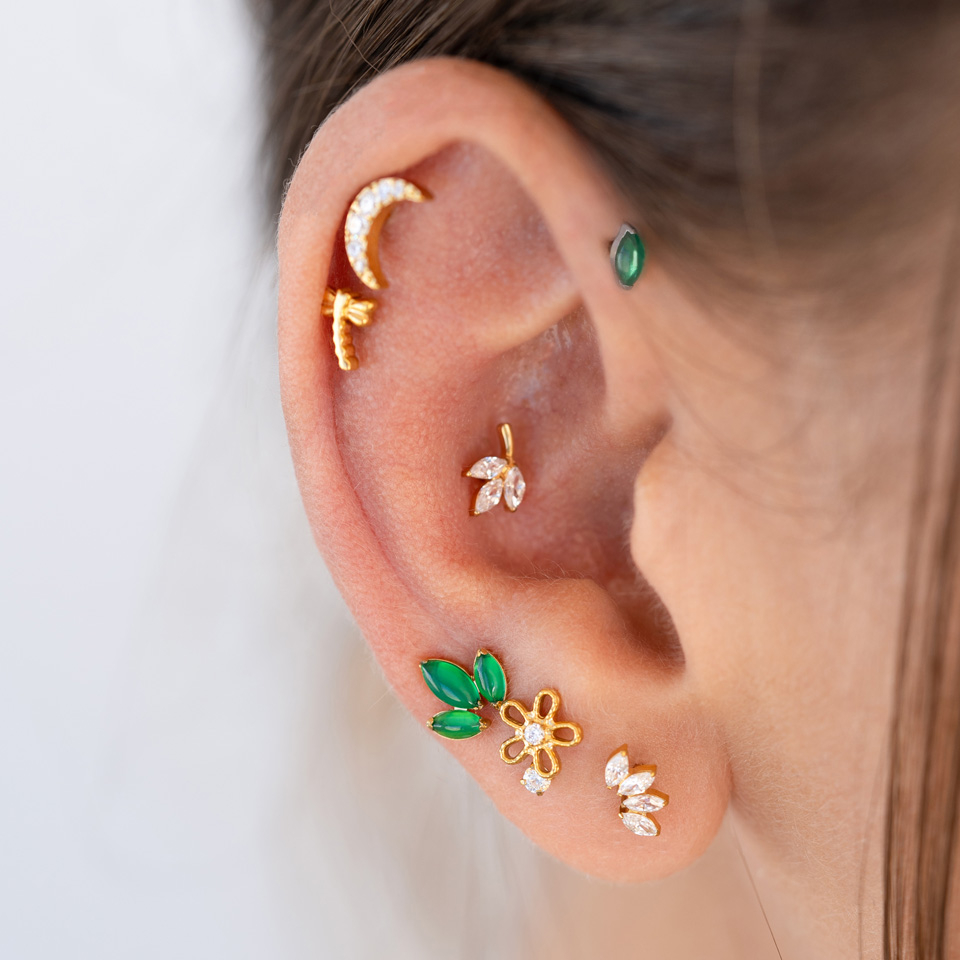 Vieta: Tragus, Kaušelis, Helix, Vidinis kaušelis