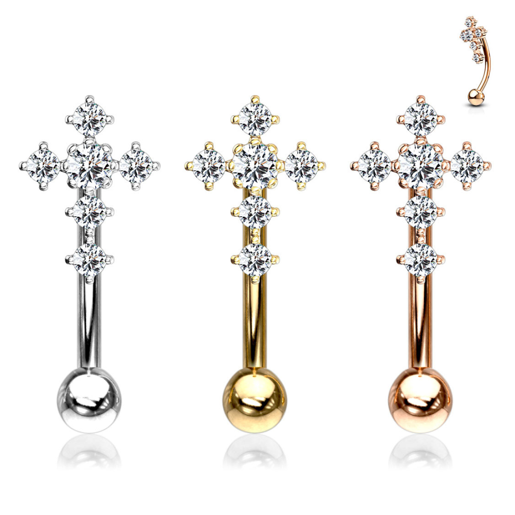 Lenktas barbell auskaras su kryžiumi