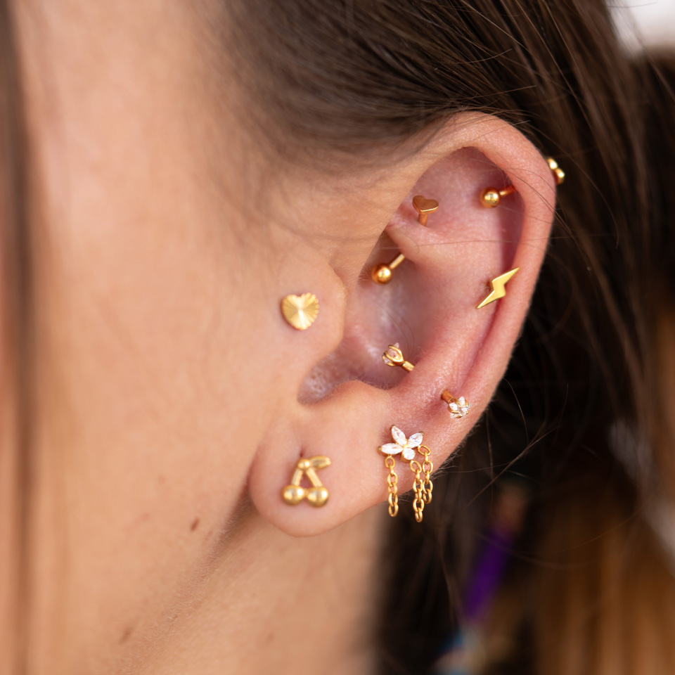 This curved barbell is suitable for a range of piercings, including the eyebrow, ear and lip. It features a cute heart at one end and a ball at the other.