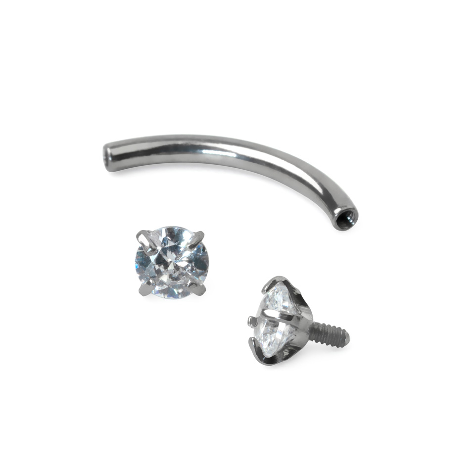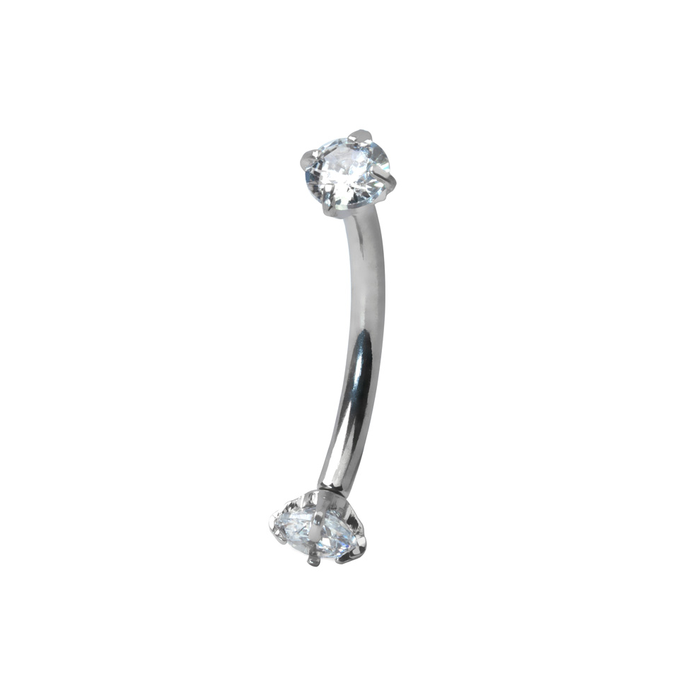 A curved bar is a very versatile piece of jewelry as it can be used in several different piercings. The most important thing is that the size and shape of your new piece of jewelry match the dimensions of your piercing. This curved bar can be used in the eyebrow or as an ear piercing, as well as in the lip as a vertical lip piercing. The possibilities are many.
