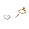 This labret features a curved bar that fits snugly into your ear if you choose to wear it in your helix piercing. It will also look great worn in the lobe. It features a delicate chain that is attached at both ends and dangles down.