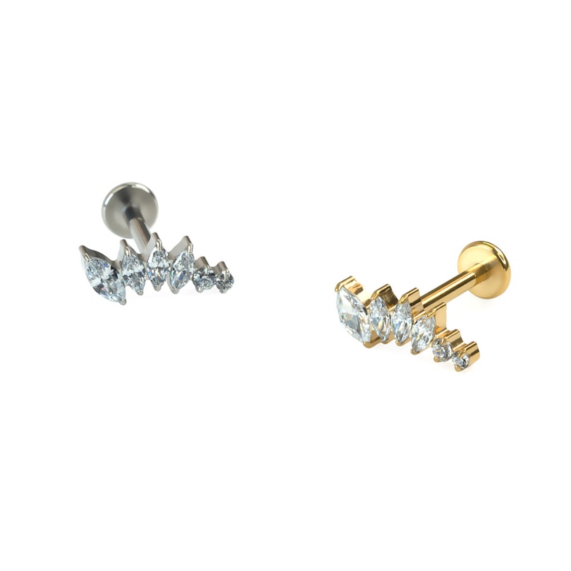 Pavadinimas: Lenktas labret auskaras su mažėjančio dydžio kristalais