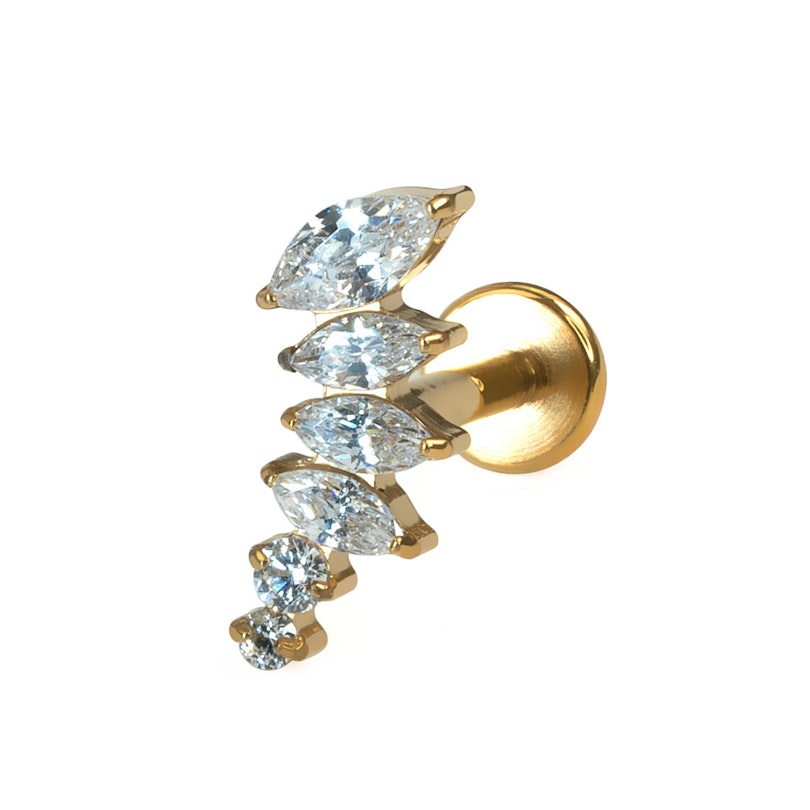 Lenktas labret auskaras su mažėjančio dydžio kristalais
