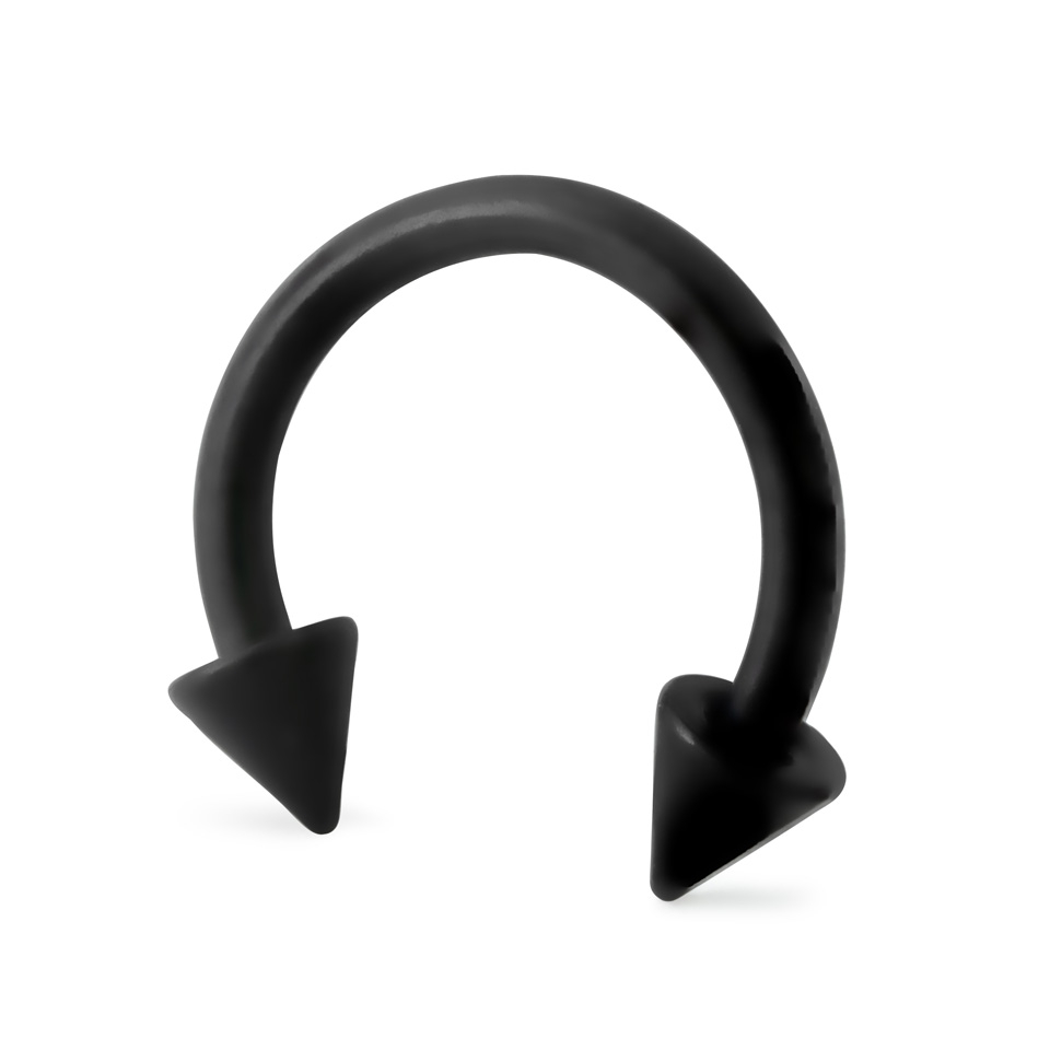 Pavadinimas: Matinės juodos spalvos pasagos formos auskaras su spygliais