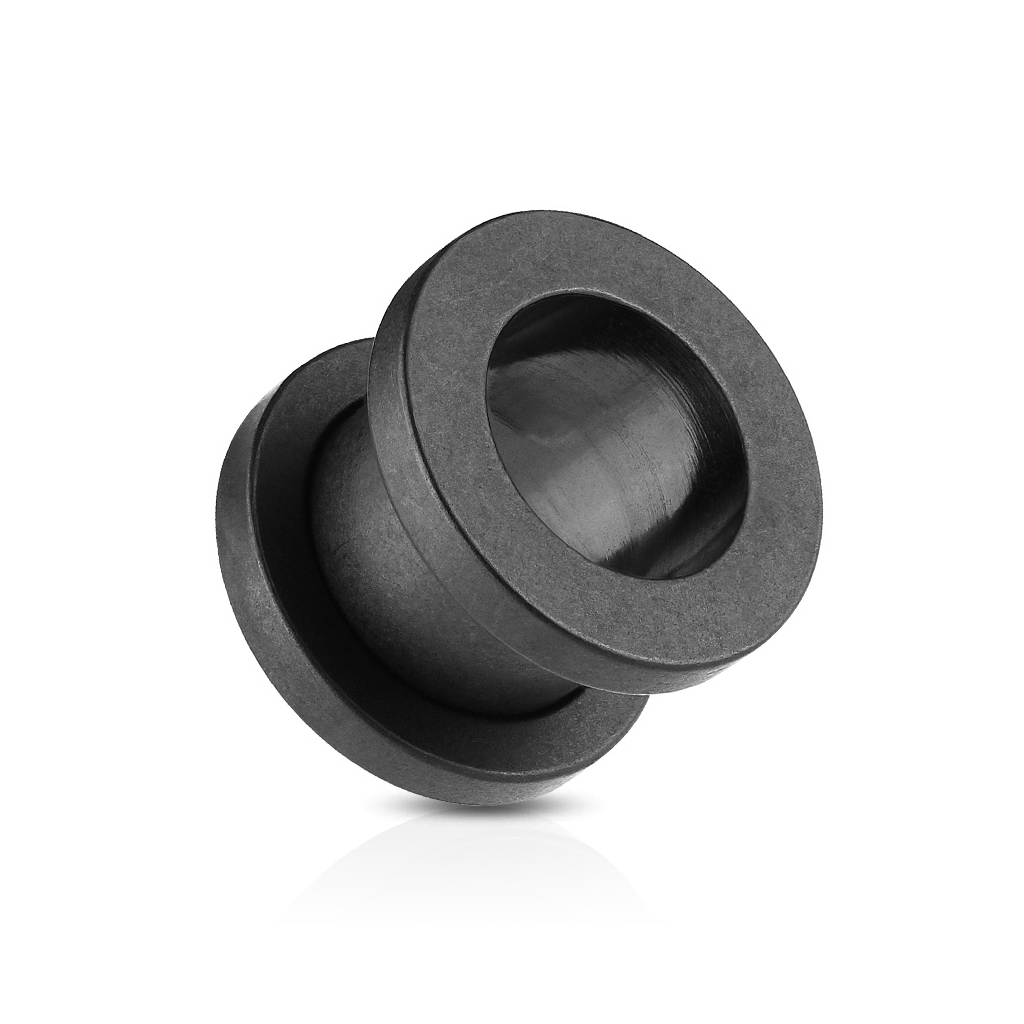 These tunnels are made of solid surgical steel, coated in a matte black color that makes them discreet and elegant to look at, even in larger sizes.