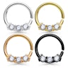 Most septum rings are big and showy; only a few have a simple hoop or seam ring. Besides, if they have stones, they look even bigger and more striking. If you want a discreet and delicate look, we invite you to take a look at this gorgeous septum ring with three tiny stones.