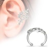 This elegant and detailed design jewelry is available in three different colors. Choose from silver or gold, both with white studded stones. But if you're looking for a more delicate model, you can get the silver model featuring stones with an aurora borealis effect. This kind of stone reflects light in rainbow colors. It creates a unique effect when the ear cuff moves.