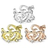 You have clicked on a filigree heart ear cuff. In the picture, you can see that the hearts are twisted and overlap each other along the outer side of the jewelry, giving it an abstract and artistic appearance. The piece is crafted from brass and plated, among other coatings, in 14-karat gold in the yellow color option.