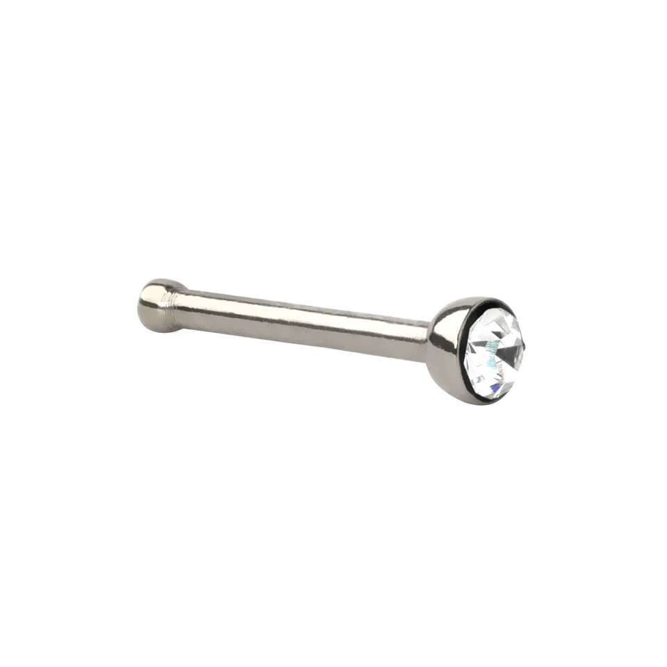 A nose stud is a simple version of a nose screw, and really easy to use. The difference is that a nose stud doesn't have a curved bar, it's a straight bar, as the name implies.