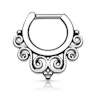 Dress up your septum with fantastic S-shaped twists in this beautiful ring with a click mechanism. The twists hold a gorgeous symmetry, and besides, the tip of the bottom edge is completed with three tiny balls.
