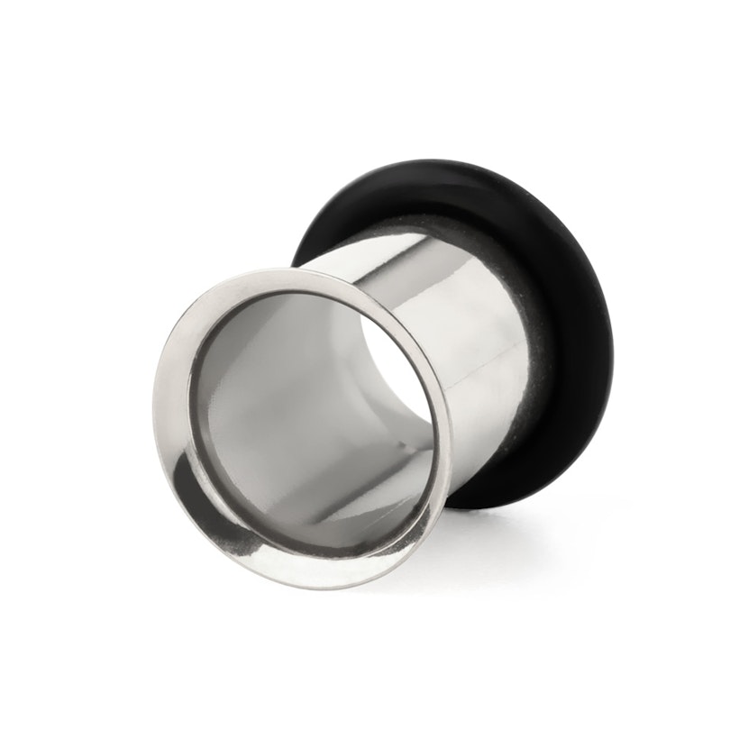 This tunnel has a quite simple design, for those who're looking for a simple yet elegant look. It's made in surgical steel and comes with an O-ring. It's an extra thin tunnel, easy to use, even in large gauge sizes. It's also easy to put in, with a flat back that enables easy insertion into the gauge. After placing it in your earlobe, sliding the O-ring into the back ensures that the tunnel doesn't slip out.