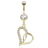 We present an extremely elegant belly button ring with a unique design that will make every girl spread her feminine beauty. This ring has a thin layer of genuine 14K gold. The curved barbell has a standard length of 3/8" (10 mm), and both the top and bottom balls have beautiful clear stones that match the stone channel in the dangle.