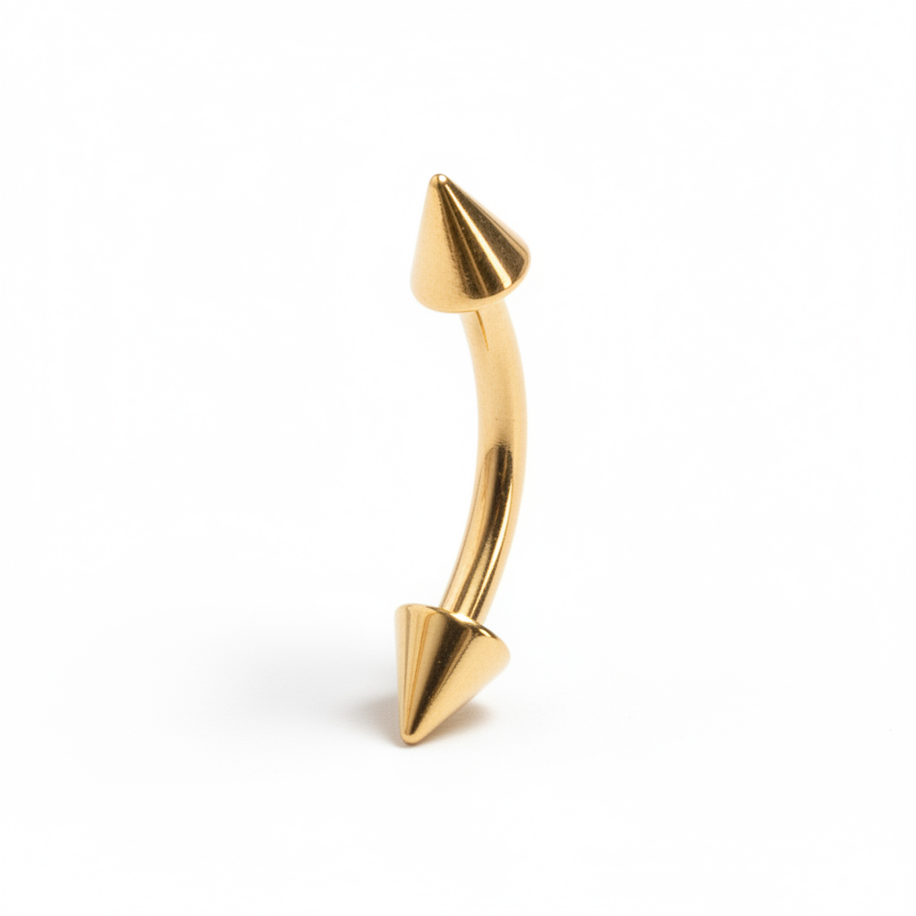 Do you need a new look for your eyebrow or nipple piercing? This fabulous curved barbell is gold-plated and has spikes on each end. It's available in two different gauge sizes and two lengths so it will fit your piercing perfectly. Curved barbells are also an excellent option for intimate piercings, so whatever is the body piercing you have, take a look at this beautiful barbell.