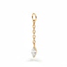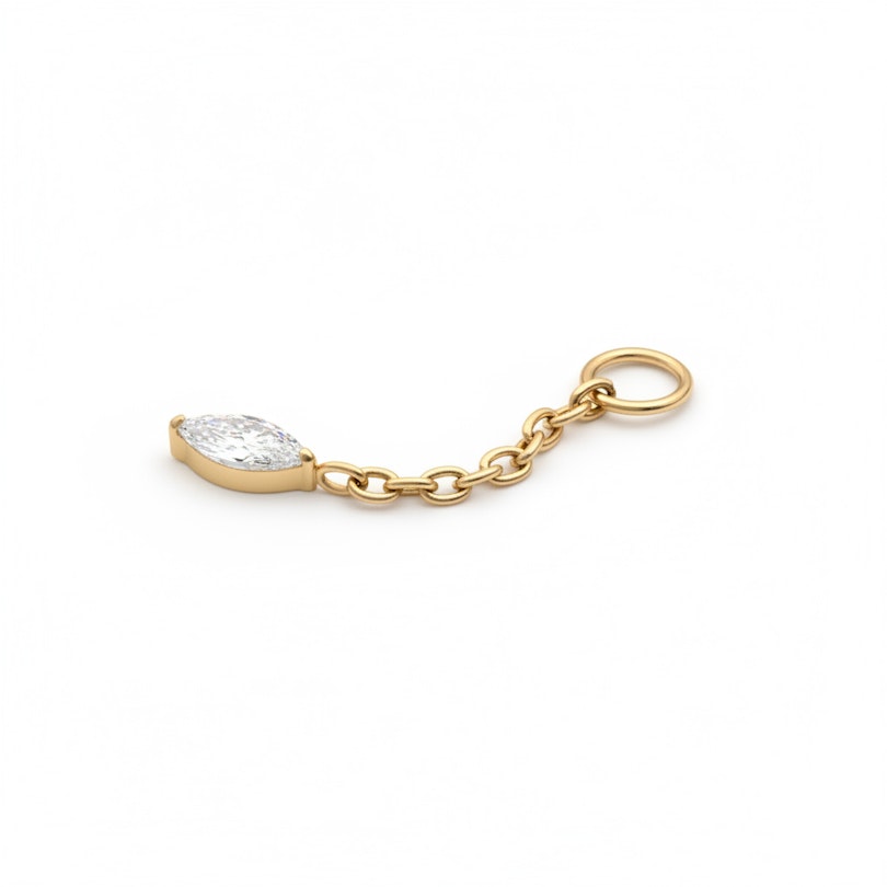 Pakabukas su apvaliu akmenuku – paprastas, bet nenuobodus. Apvalus deimantas kabo nuo plonos titano grandinėlės ir juda su kiekvienu jūsų judesiu, be vargo suteikdamas gyvybės jūsų papuošalams. Tai detalė, kuri tinka visur; galite užsidėti jį ant mėgstamo žiedo, jei jis ne didesnis nei 3 mm.