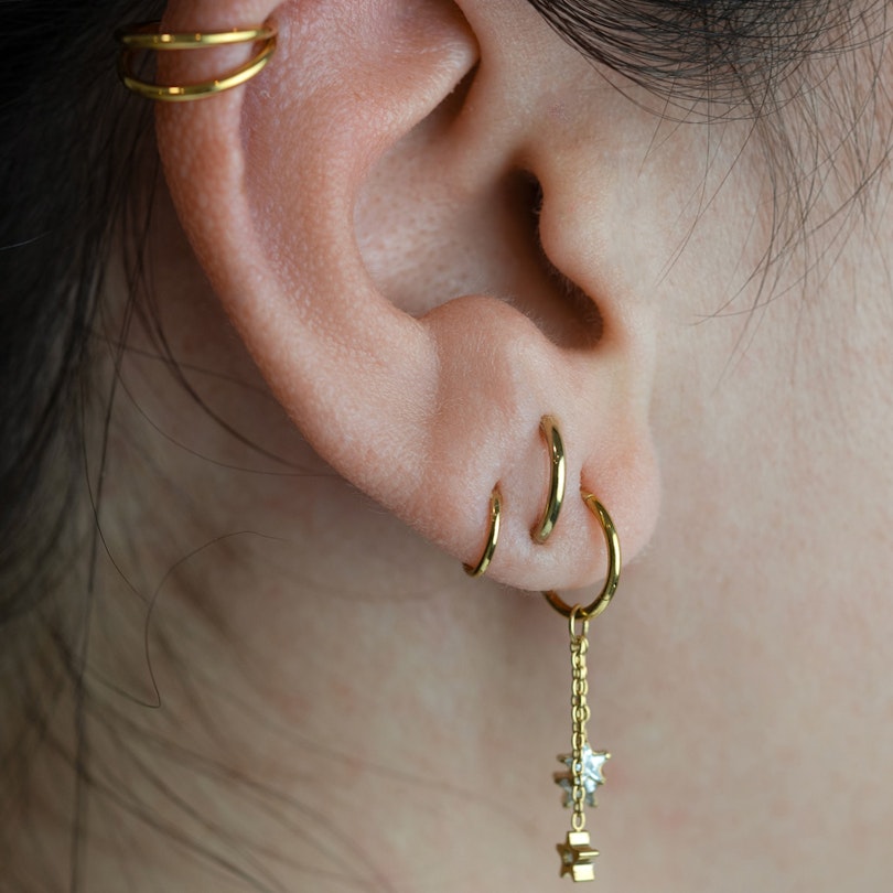Trys žvaigždutės, trys grandinėlės – stiliaus bomba. Šis titano pakabukas su trimis žvaigždutėmis įneša lengvo judesio ir šiek tiek asmenybės į jūsų papuošalų derinį. Trys grandinėlės kabo nuo vieno žiedelio, kuri kiekviena baigiasi į lizdą įstatytu skaidriu linguojančiu akmenuku.